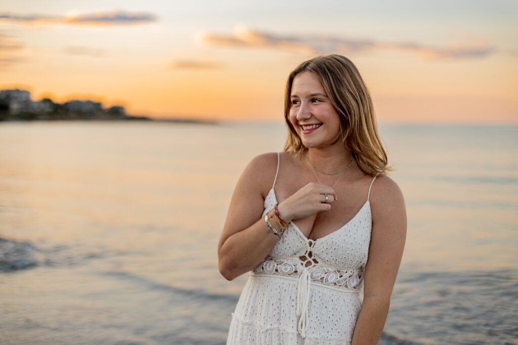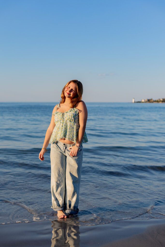 The sunset showed up in full force that night… soft, warm, and glowing in all the right ways. And Cate? She was down for anything. The kind of senior who trusts the process completely. I’m fairly certain she would’ve laid down in the water if I had suggested it… but don’t worry, I’m not that wild. Still, her openness made the session so fun and creative.